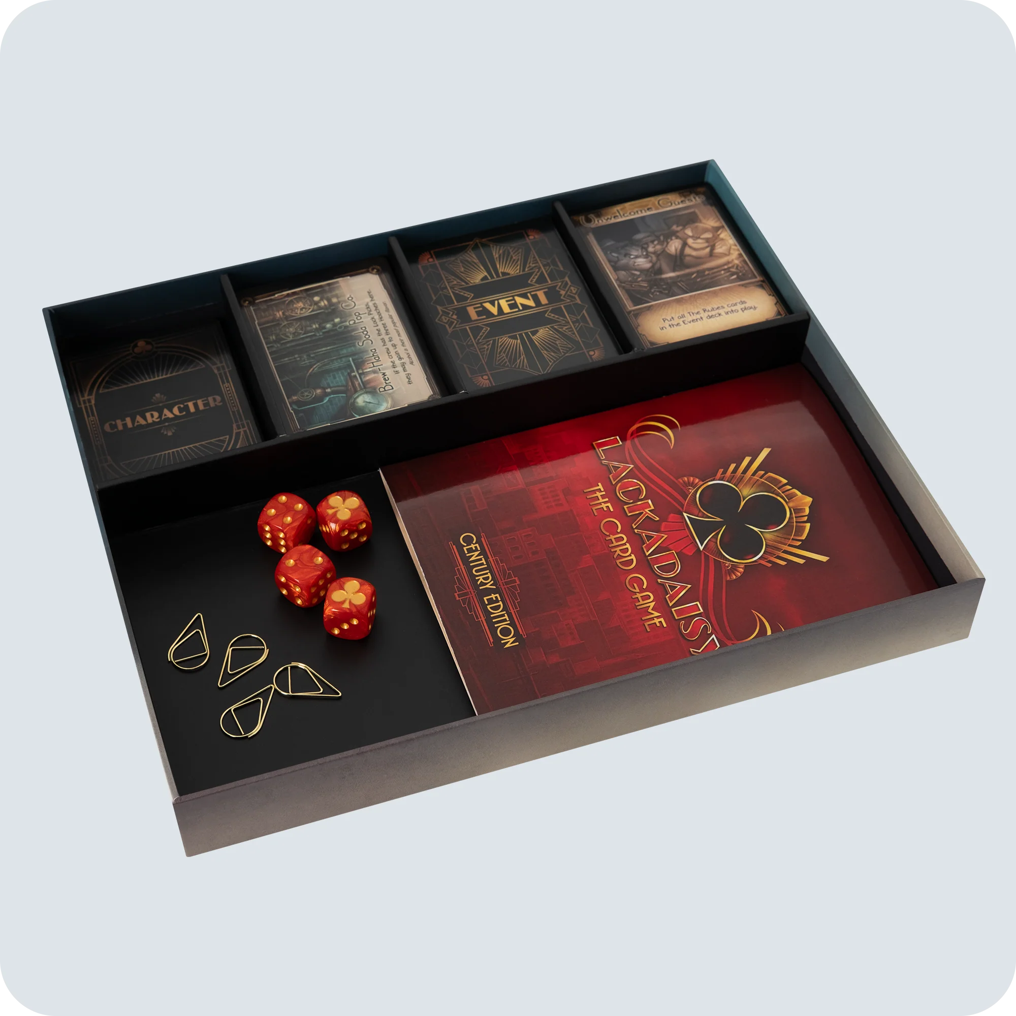 The long-awaited return of the Lackadaisy Card Game is finally here, brought back by the dedicated fans who hit the BackerKit stretch goal! Designed by ThinkTank Games, the Lackadaisy Card Game is a cooperative game that takes 10-15 minutes per round, with a variable map.
