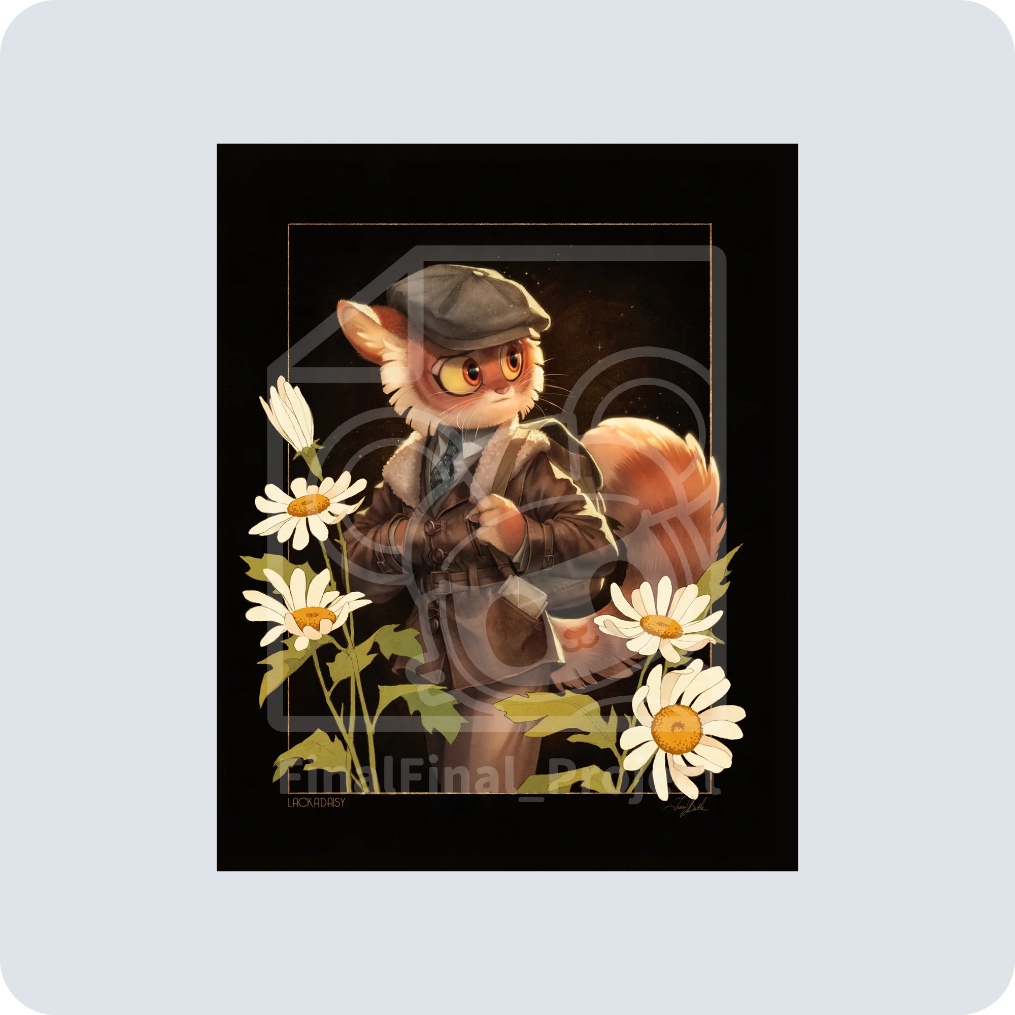 A collection of four gorgeous prints drawn by Lackadaisy creator, Tracy J. Butler. Contains the Viktor Fisticuffs, Freckle Wayware, Lackadaisy Sunshine, and Lackadaisy Wilds prints.